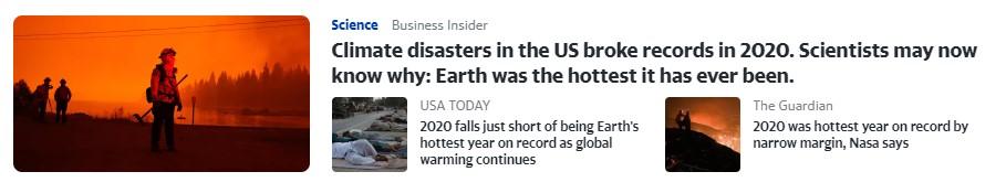 OK, was 2020 the hottest year on Earth… …ever? Yahoo News put a Business Insider article in my feed saying that 2020 was the hottest year on Earth ever. I attach a screenshot. NOAA seems to agree on its webpage. NOAA seems like an authoritative source so should Yahoo News and Business Insider pass a fact check? No.